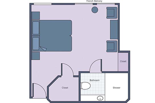 Lavishly appointed riverview stateroom (151 sq ft – 14 sq m) with a French balcony