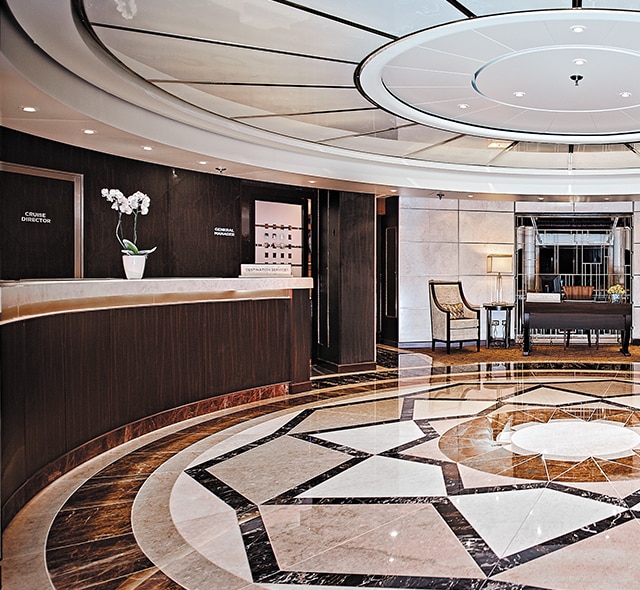 ![]() | Reception & ConciergeRegent’s welcoming Reception Desk is open 24 hours a day and staffed by personable, knowledgeable men and women who are happy to answer your questions and provide any general assistance you may need. Reception is also where you may contact the ship’s Concierge. Postcards and letters may be dropped off here as well; they’ll be delivered to the postal service at the next port of call. |