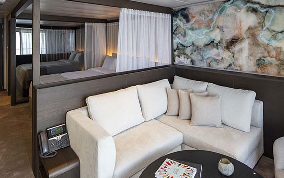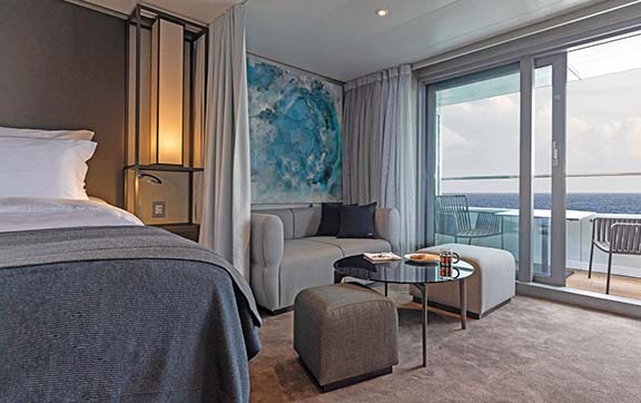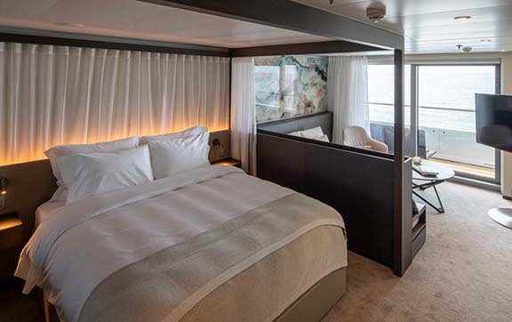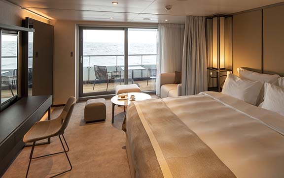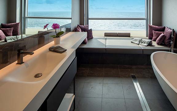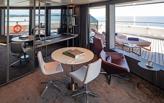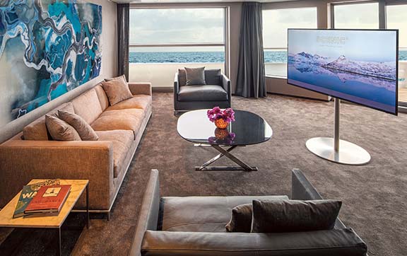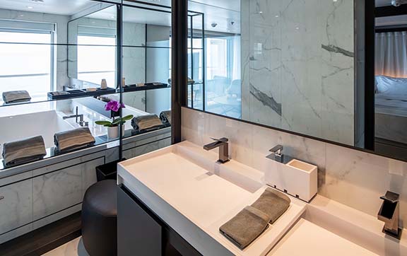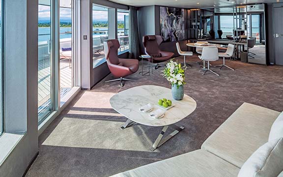 Featuring a spacious curved terrace with private Jacuzzi, outdoor lounge and sun loungers, these oversized suites surpass the comfort and amenities found in the finest hotels in the world, along with trip-defining world-class innovations such as a state-of-the-art theatre and exceptional discovery vessels.
