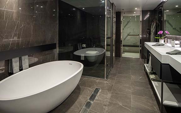 For a once-in-a-lifetime cruising experience, combine one of the Owner’s Penthouse Suites with a Spa Suite to create the magnificent Two-Bedroom Penthouse Suite. At an incredible 245-square-metres, it is simply out of the world in terms of size, luxury and opulence.