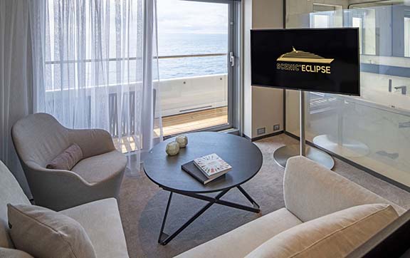 Located at the front of Scenic Eclipse, overlooking the bow on the upper decks, with spacious curved terraces, these grand suites will surpass your expectations.