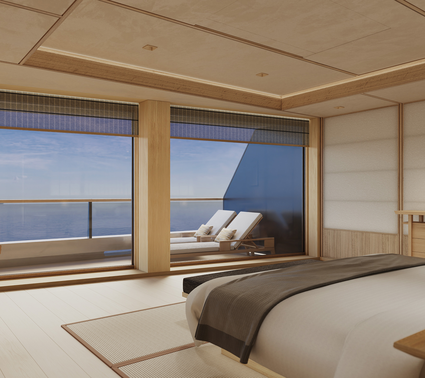 Every space on board — from private terraces to serene lounges — is crafted to frame the rhythm of the ocean. Dedicated hosts, bespoke dining, and a spirit of calm sophistication define life aboard.