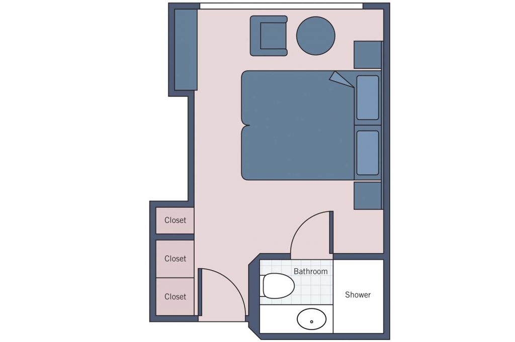 Handcrafted Savoir® of England bed, built-in closet, hair dryer, safe, individual thermostat, flat-screen TV with infotainment center and satellite, and bottled water