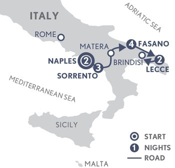 Discover the glorious art, architecture, food and wine of Italy in three of its most celebrated regions. Start in soul-stirring Naples then take in the dramatically beautiful and glamorous Amalfi Coast where terraced citrus groves and pastel hued cliffside villages drop steeply into the glittering blue sea. Finish up in Puglia, one of the country’s most appealing and unspoiled regions where Baroque and Renaissance architecture contrasts with the simple, yet distinctive, conically rooved trulli. Each region boasts its own culinary tradition which you’ll savour along the way.